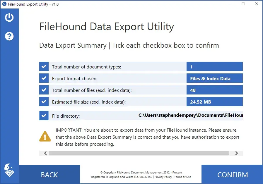 Утилита экспорта данных из FileHound позволяет администраторам запустить безопасное извлечение документов и данных для альтернативного варианта создания бэкапов и восстановления данных. Это приложение загруит все документы и/или метаданные, сохраненные в FileHound основываясь на выбранных фильтрах. Метадата будет извлечена в форматах XML и JSON.
